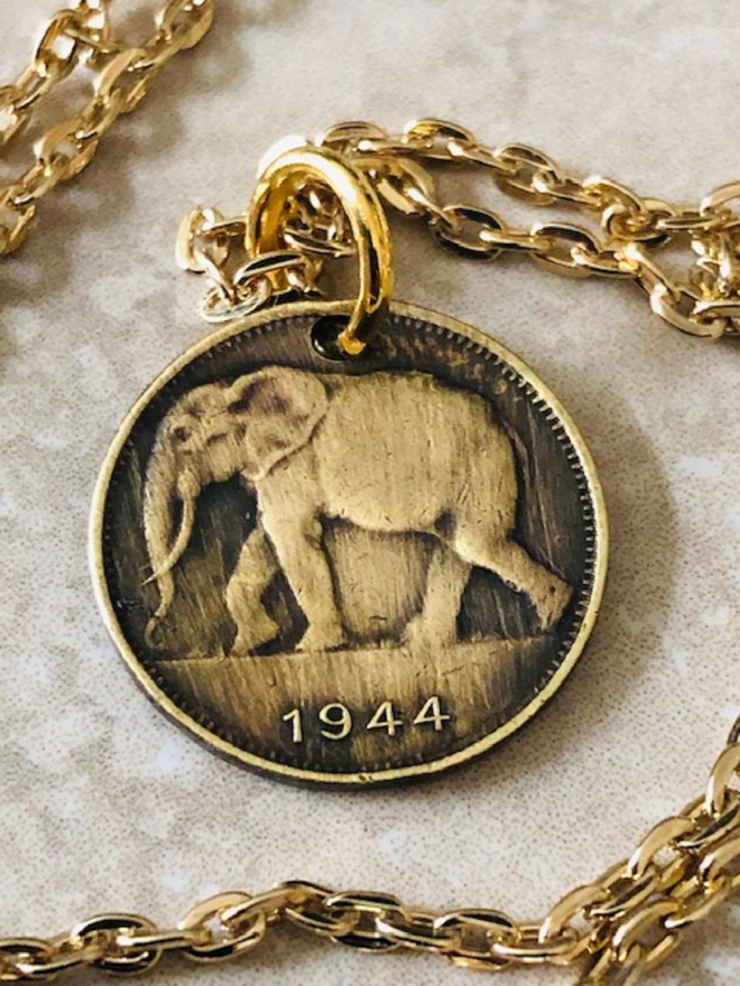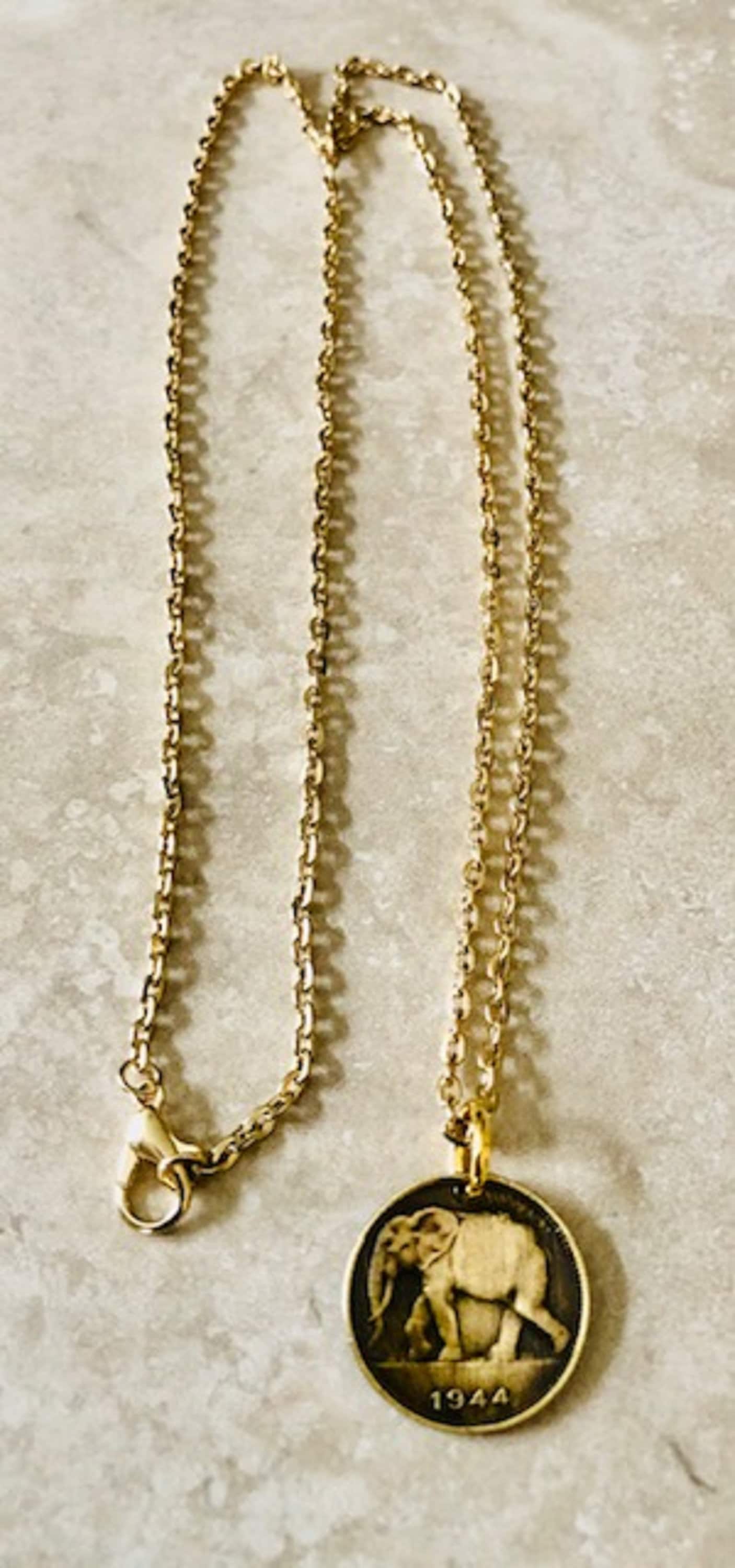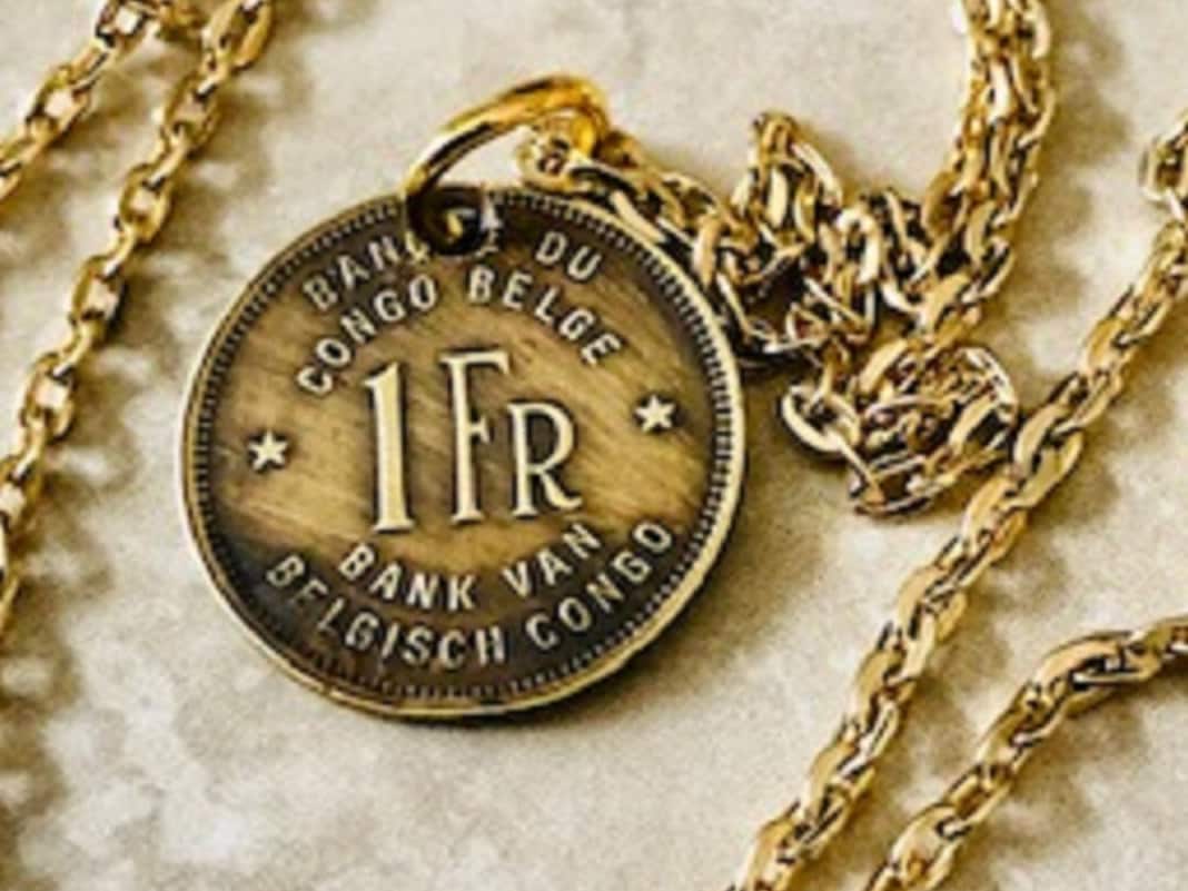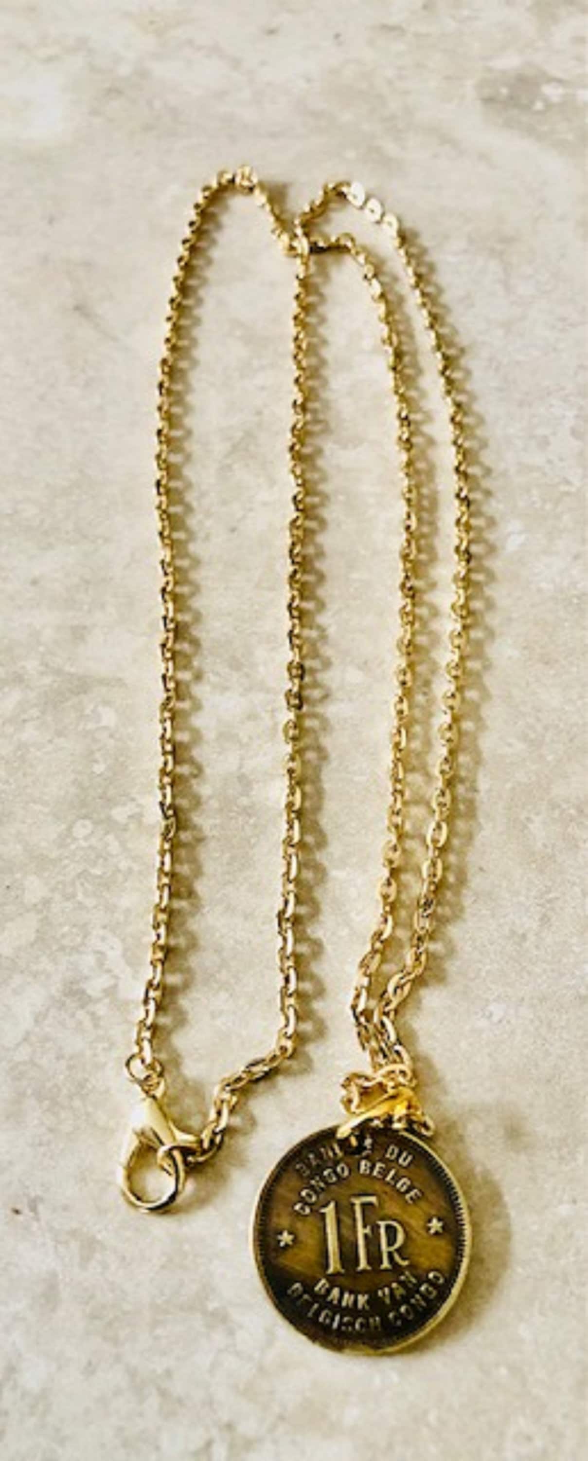 Africa Coin Necklace Gift Him Her African 1 FR Pendant Vintage Jewelry Congo Coin Fashion Accessory Handmade Personal World Coin Collector
